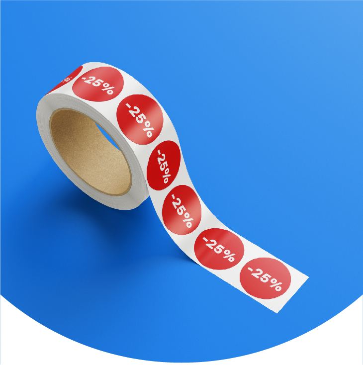 Productstickers voor de retail- en detailhandel. Heb je binnenkort een sale of uitverkoop? Dan hoef je niet verder te zoeken. Vind hier al onze productstickers zoals kortingsstickers, prijsstickers, tekst stickers, plus stickers, blanco stickers, beschrijfbare stickers, bril stickers, maatstickers, solden stickers en black friday stickers.